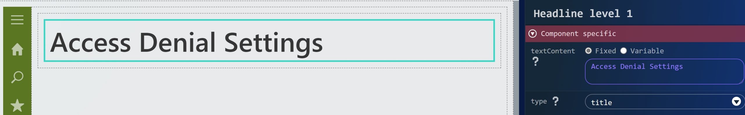 「見出しレベル1」のtextContentプロパティにAccess Denial Settingsと入力してください。
