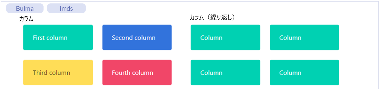名称 標準 imui Bulma imds カテゴリ 用途 カラム ー ー ● ● レイアウト(Bulma)