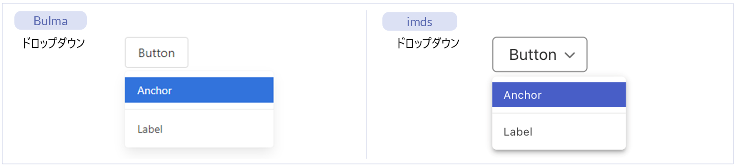 名称 標準 imui Bulma imds カテゴリ 用途 ドロップダウン ー ー ● ● コンポーネント(Bulma)