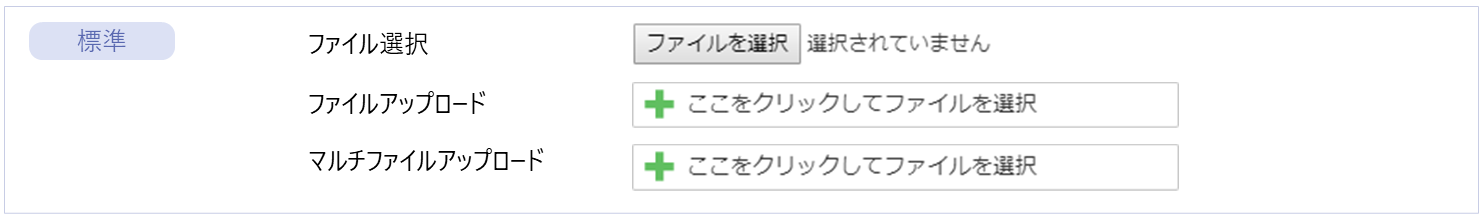 ユーザがローカル環境からファイルを選択し、アプリケーションやWeb画面に送信するためのフォーム要素です。
