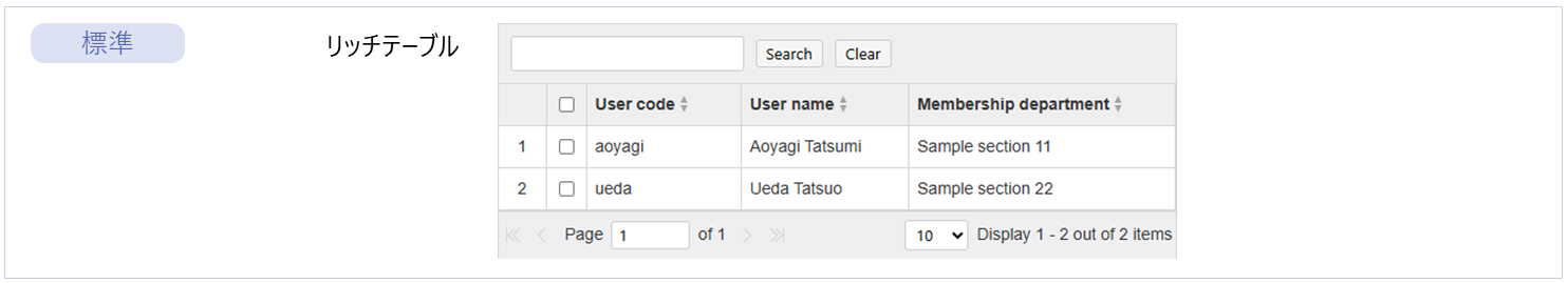 名称 標準 imui Bulma imds カテゴリ 用途 リッチテーブル ● ー ー ー フォーム部品 ソート・ページング・簡易検索・データ編集機能を持つテーブルエレメントです。 カード