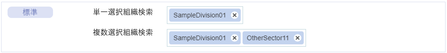 名称 標準 imui Bulma imds カテゴリ 用途 単一選択ユーザ検索 ● ー ー ー 共通マスタ 共通マスタに登録されている一人のユーザを検索するエレメントです。 複数選択ユーザ検索 ● ー ー ー 共通マスタ 共通マスタに登録されている複数のユーザを検索するエレメントです。 所属組織による単一選択ユーザ検索 ● ー ー ー 共通マスタ 共通マスタに登録されている一人のユーザを所属組織から検索するエレメントです。 所属組織による複数選択ユーザ検索 ● ー ー ー 共通マスタ 共通マスタに登録されている複数のユーザを所属組織から検索するエレメントです。