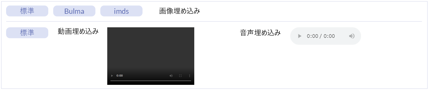 画像・動画・音声といったメディアや外部リソースを埋め込むための部品群です。