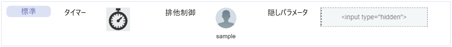 | 隠しパラメータ | ● | ー | ー | ー | フォーム部品 | アプリケーションの実行時に表示されない非表示データを送信するエレメントです。 |