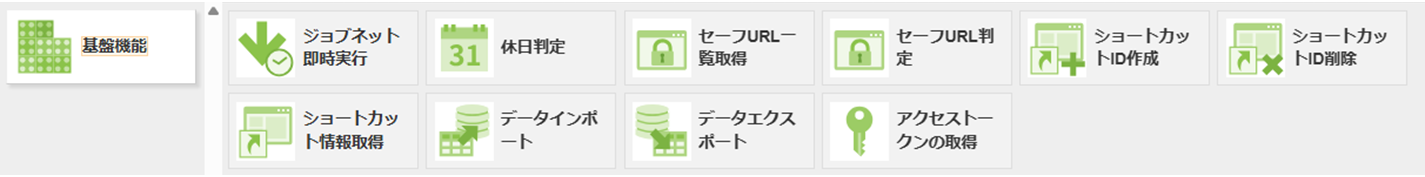 | ショートカット情報取得 | ショートカットIDに紐づくリンク先の情報(パスやパラメータなど)を取得します。 |
