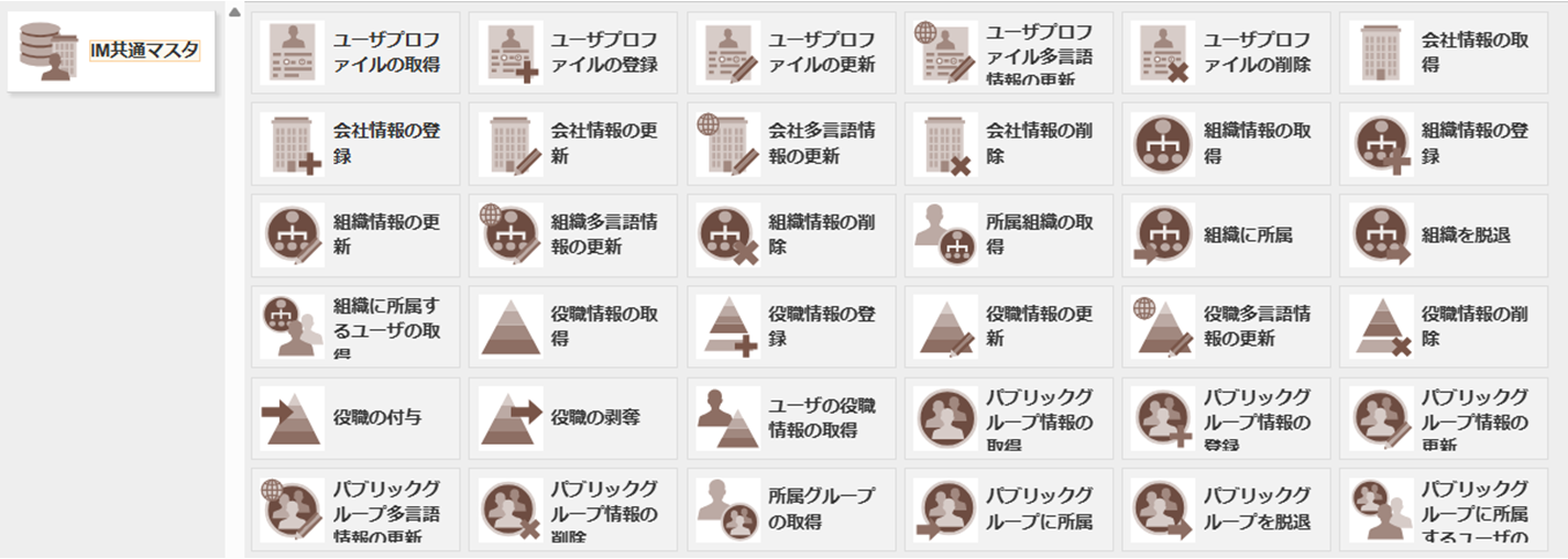 | パブリックグループ情報の操作 | パブリックグループの情報の登録・更新・削除、および多言語情報の更新を行います。 |