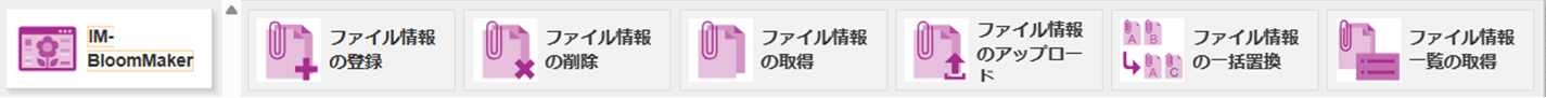 | ファイル情報のアップロード | IM-BloomMakerの添付ファイルを一時的にアップロードします。アップロード後に登録処理が必要です。 |