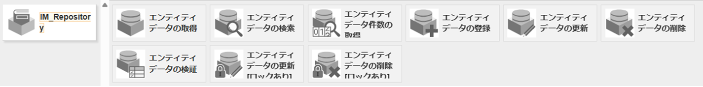 IM-Repositoryのエンティティデータに関する処理を行う場合に利用します。パレットの「IM-Repository」メニューから選択できます。