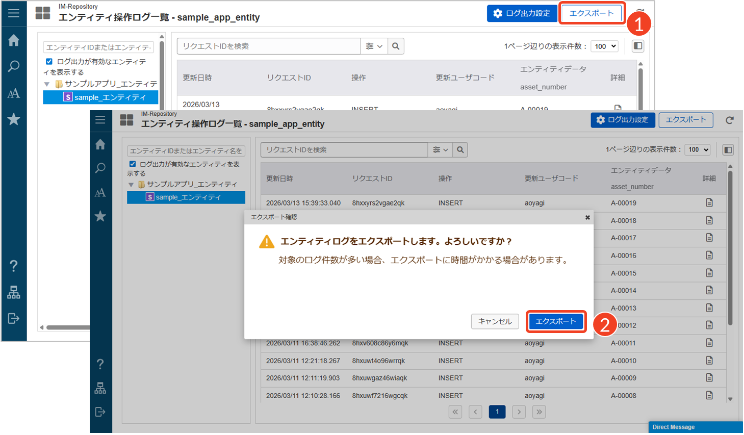 エンティティ操作ログの結果をJSONファイルにエクスポートします。