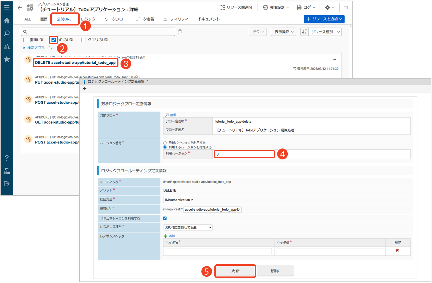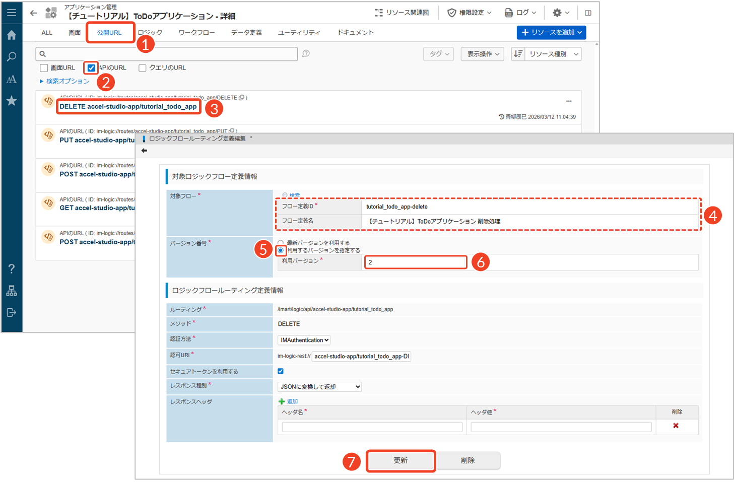 フロールーティング(APIのURL)に紐づいているロジックフローのバージョンを、修正済みのバージョンに変更します。