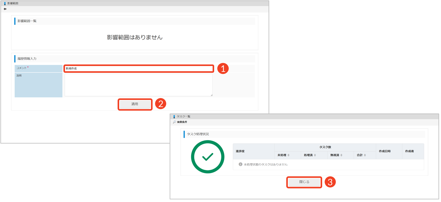 - [影響範囲確認]をクリックします。