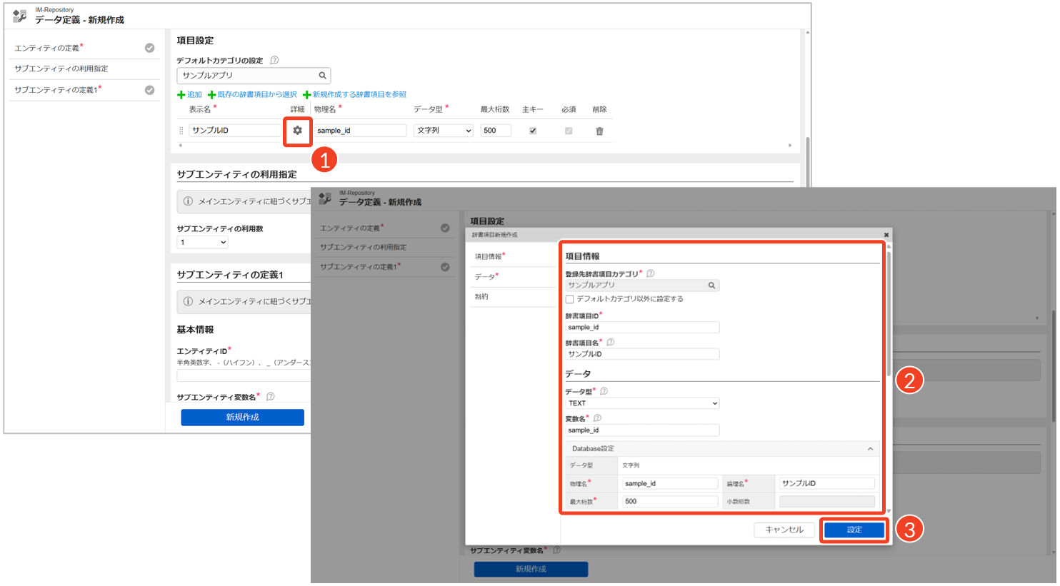 ここでは、エンティティ設定に含まれる辞書項目の詳細設定について説明します。
