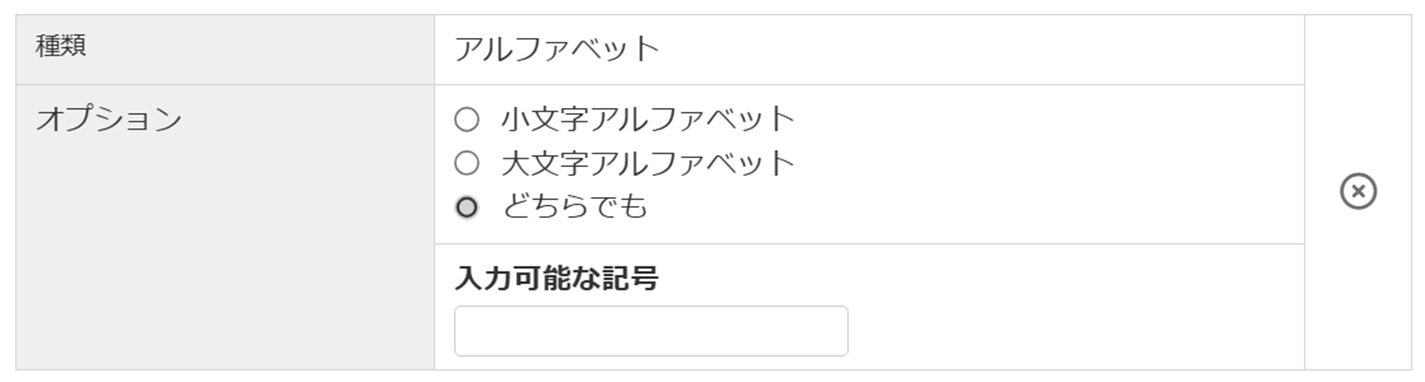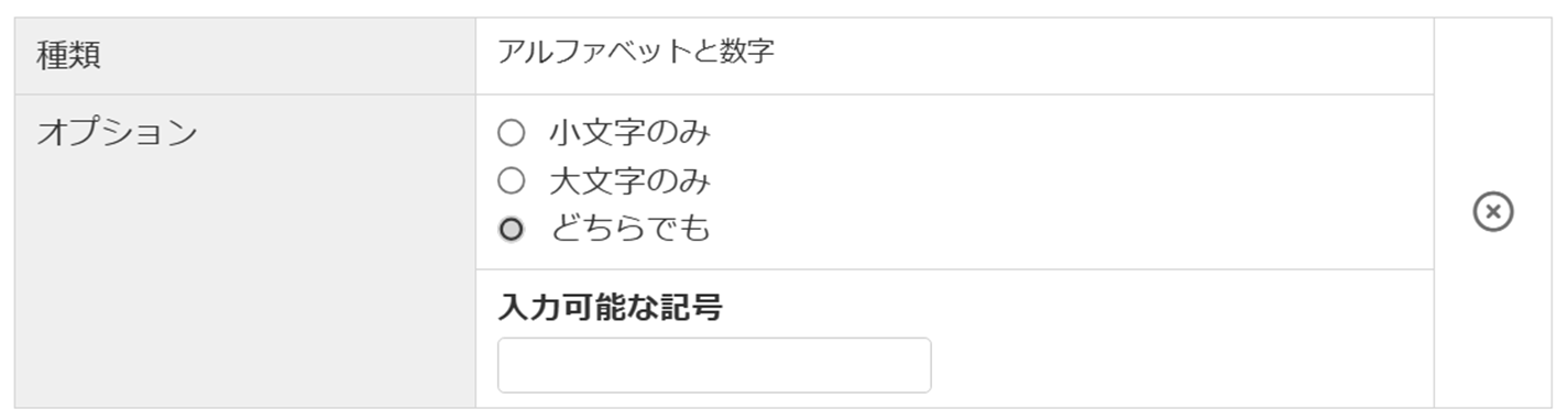 - 大文字・小文字の指定や、英字以外に使用可能な記号を制限できます。