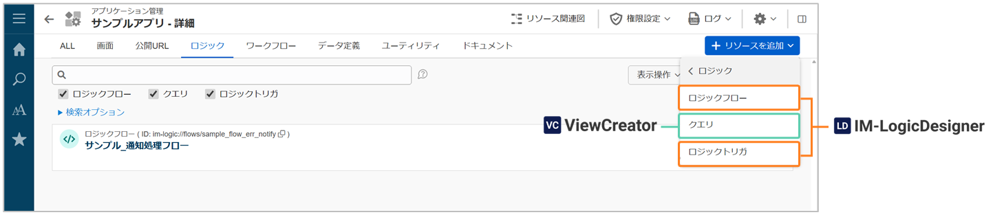 ここでは、「ロジック」リソースにロジックフローを追加する際の基本的な操作について説明します。