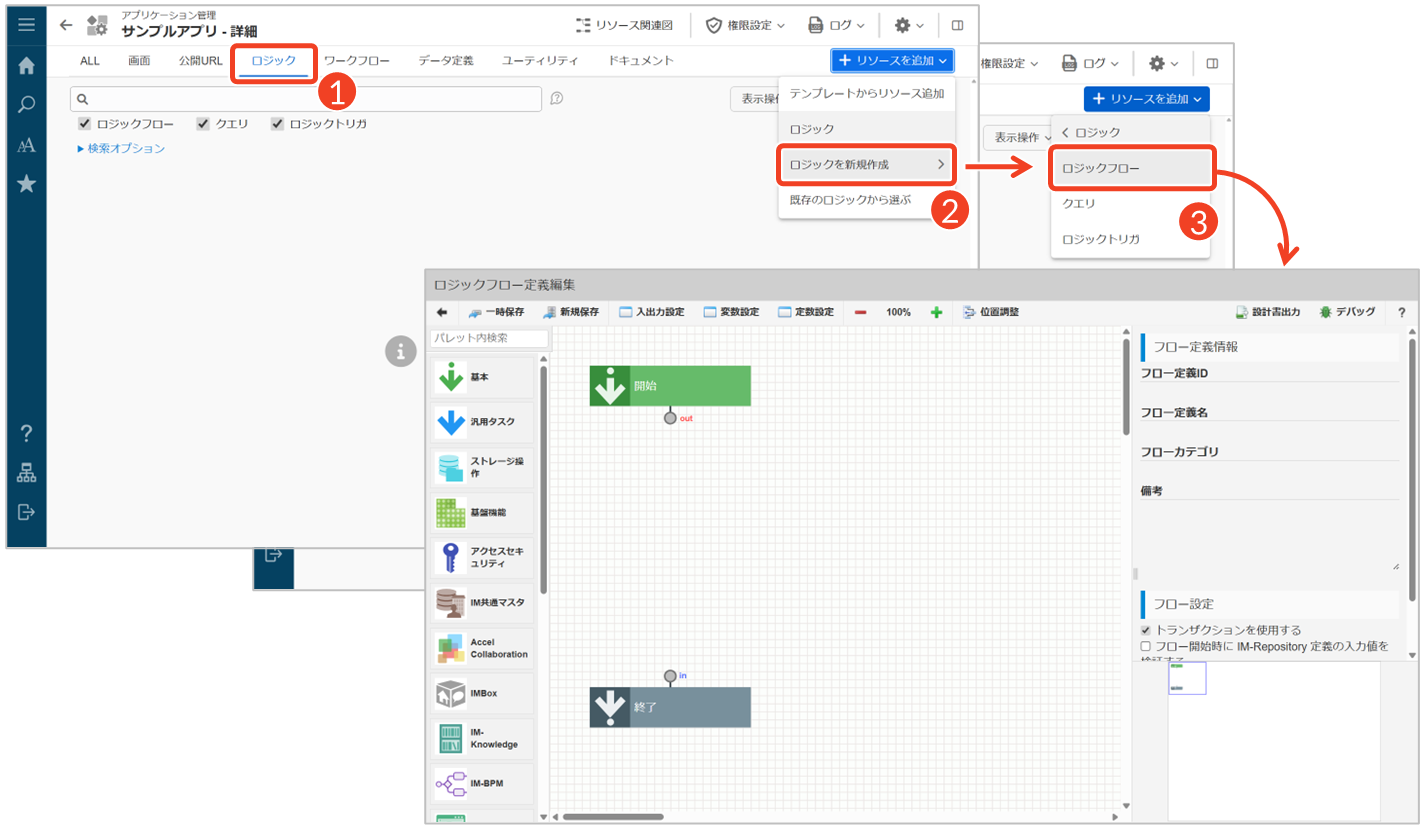 - ロジックフロー定義(ロジックフロー):IM-LogicDesignerの機能