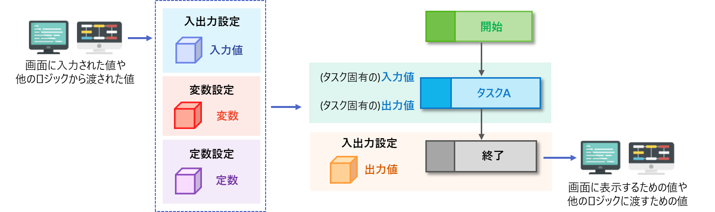 ここでは、ロジックフロー定義における3種類の値について確認します。