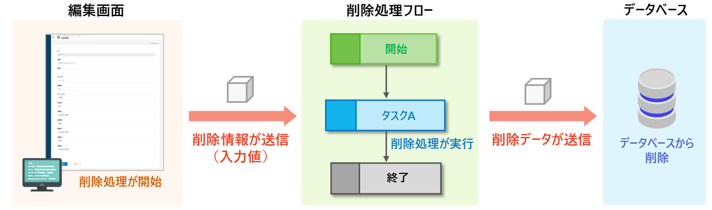 削除処理の基本は、データベースから対象となるデータを特定し、適切に削除することです。ロジックフローを確認しながら、削除対象の条件と画面上の操作項目との対応関係を確認していきましょう。