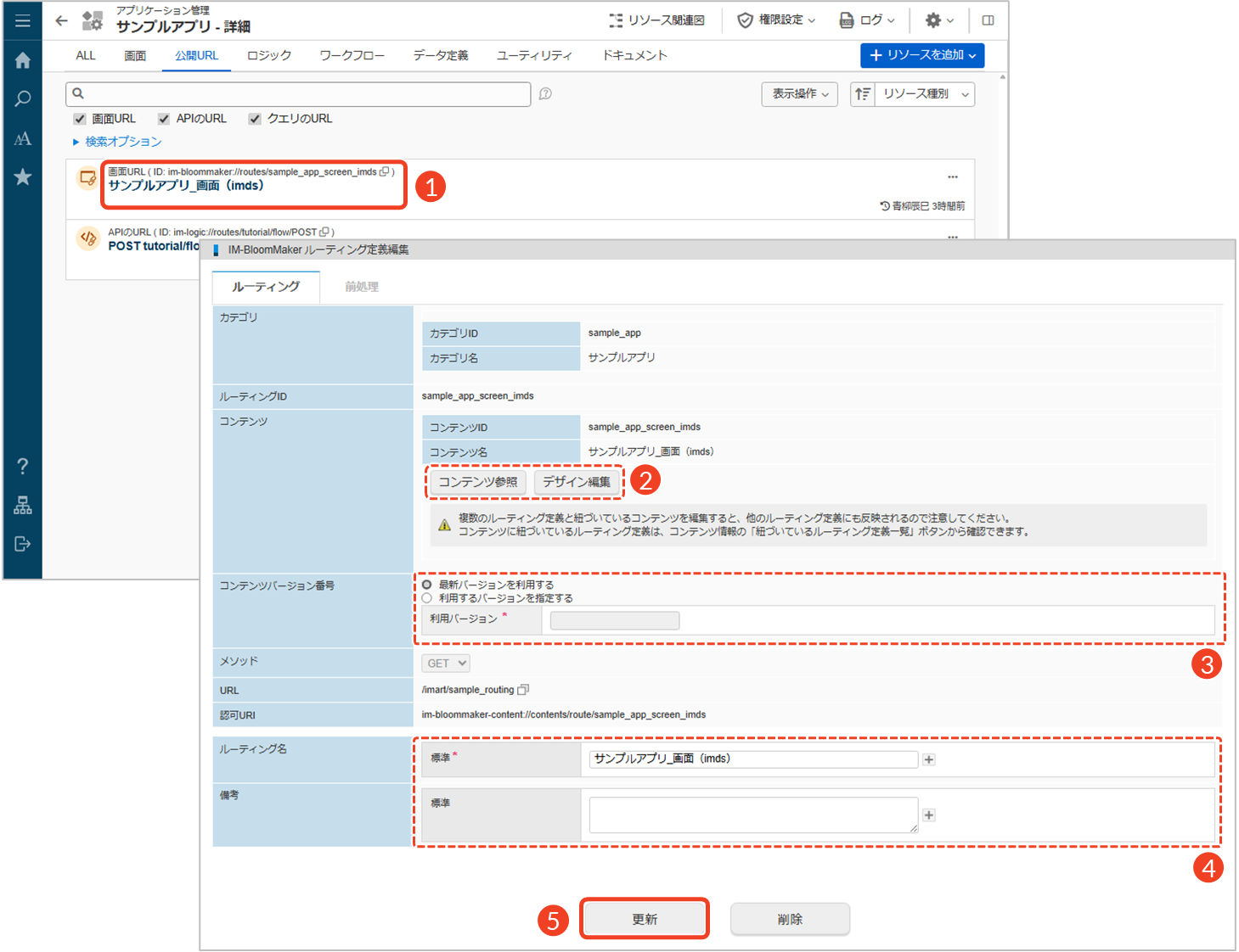 ここでは、作成済みの画面のルーティング定義を後から編集する方法について説明します。
