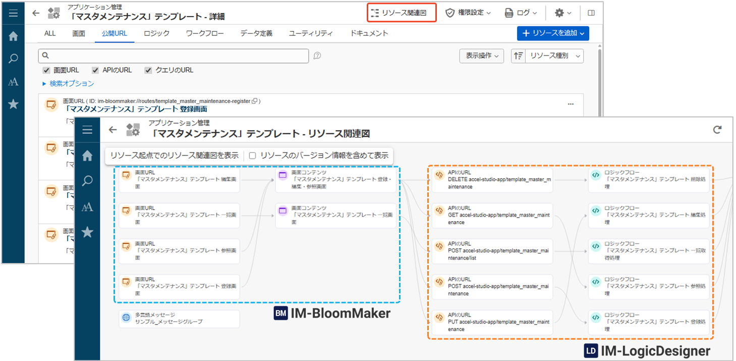 - IM-LogicDesignerで作成したロジックフローと、それに対応するAPIのURLとの関係