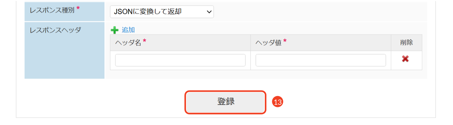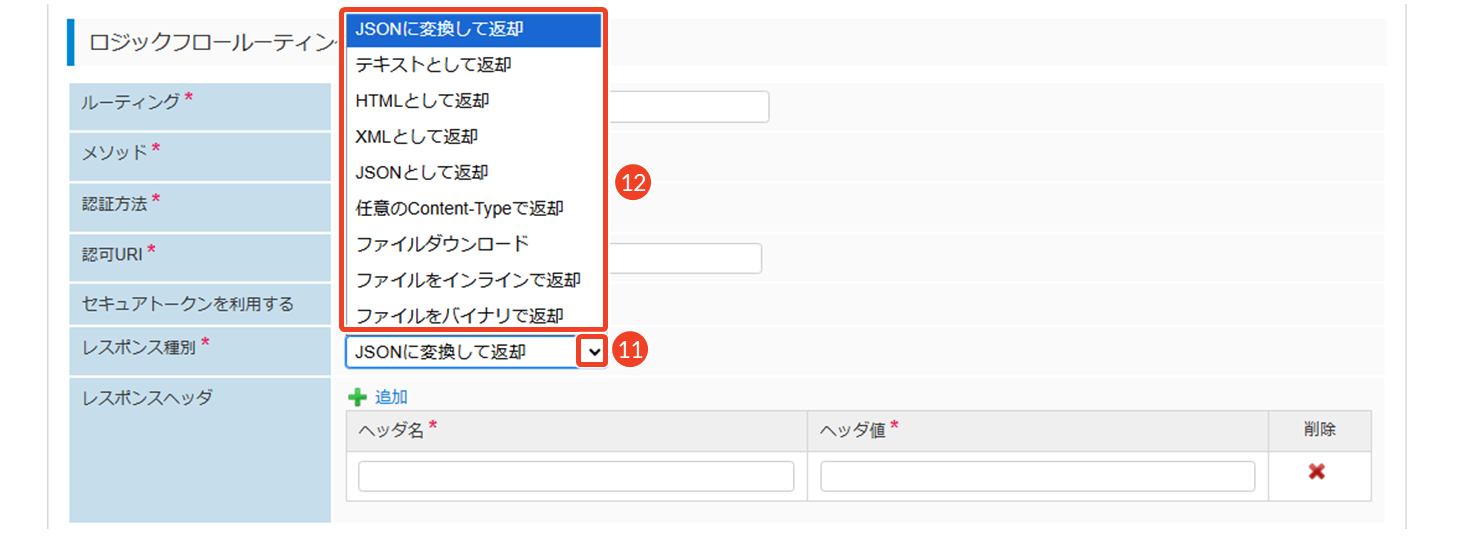 フロールーティングを実行した際に得られる出力データの返却形式を指定し、任意でヘッダ情報を追加します。