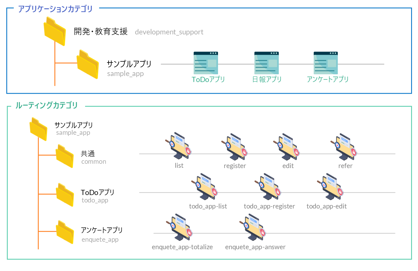 本マニュアルでは、「サンプルアプリ(sample_app)」カテゴリを作成し、ルーティング定義を保存します。