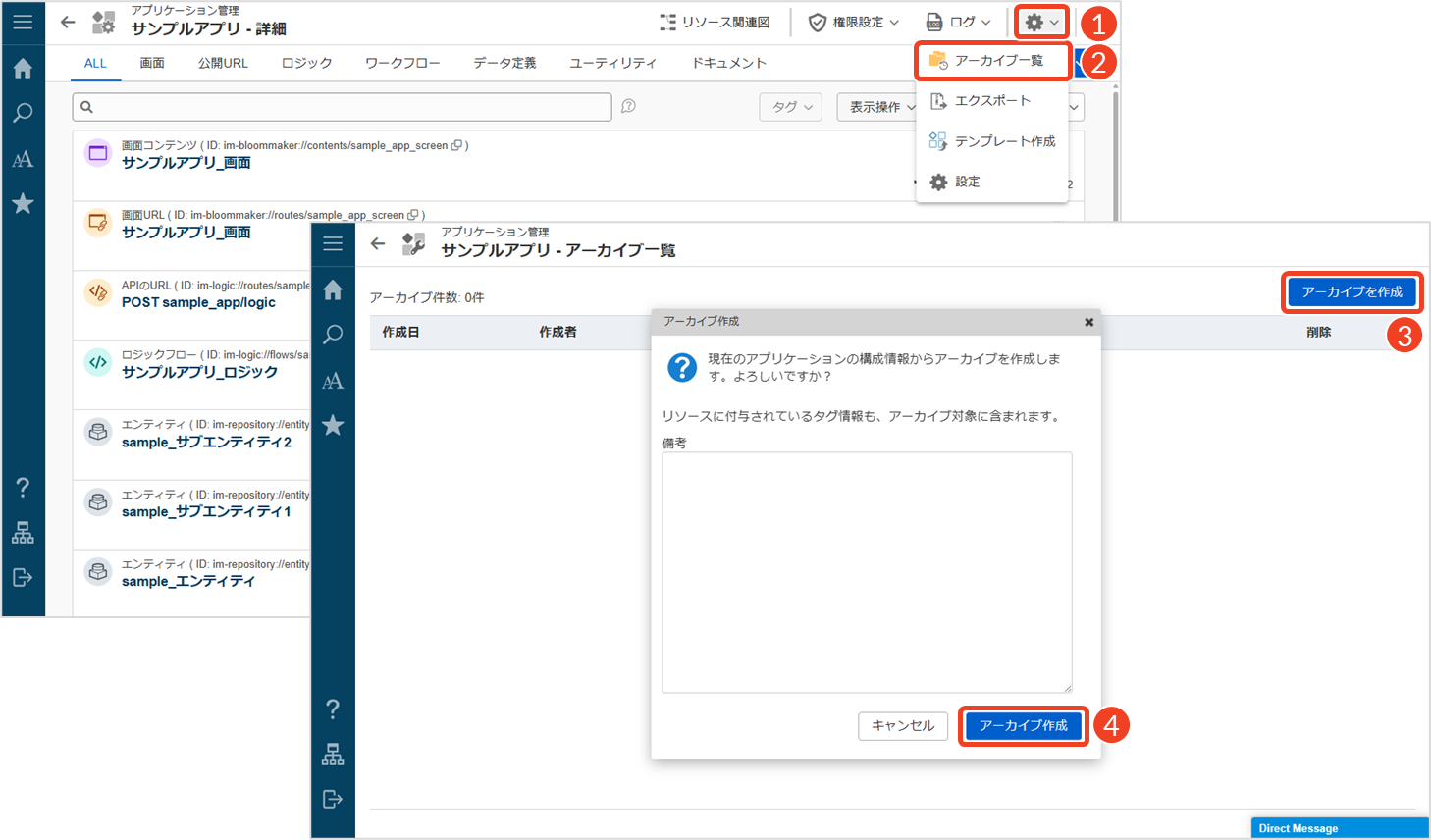 └ 「アーカイブ一覧」画面に、アーカイブが作成されます。