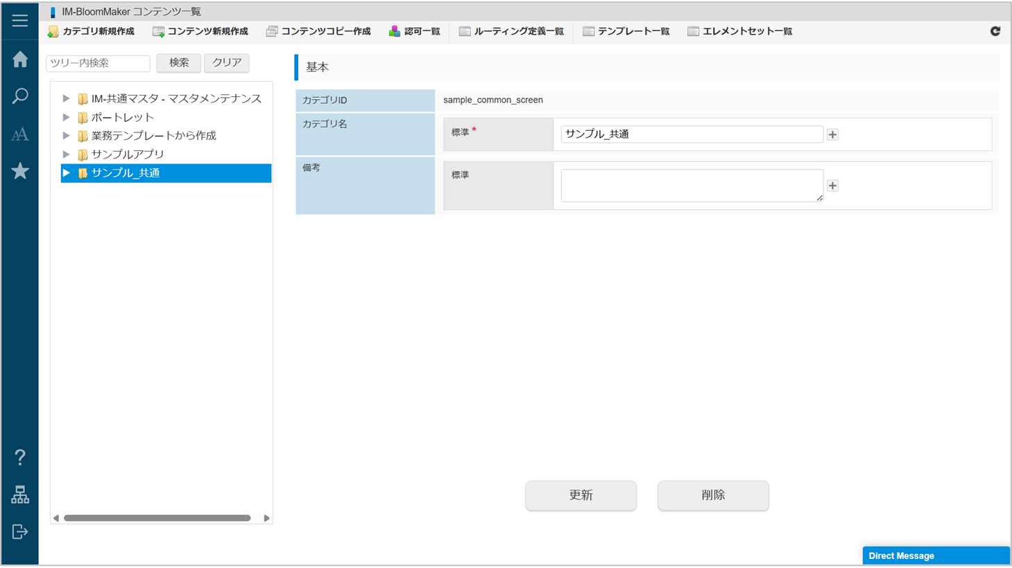 画面コンテンツを用途別に整理・管理するために、利用目的に応じたカテゴリを作成します。カテゴリ内では、複数のコンテンツを管理できます。また、親カテゴリと子カテゴリを作成することも可能です。