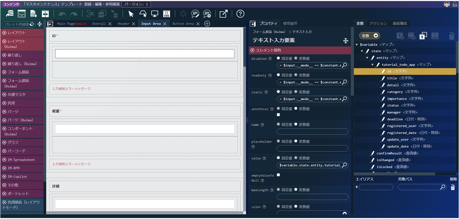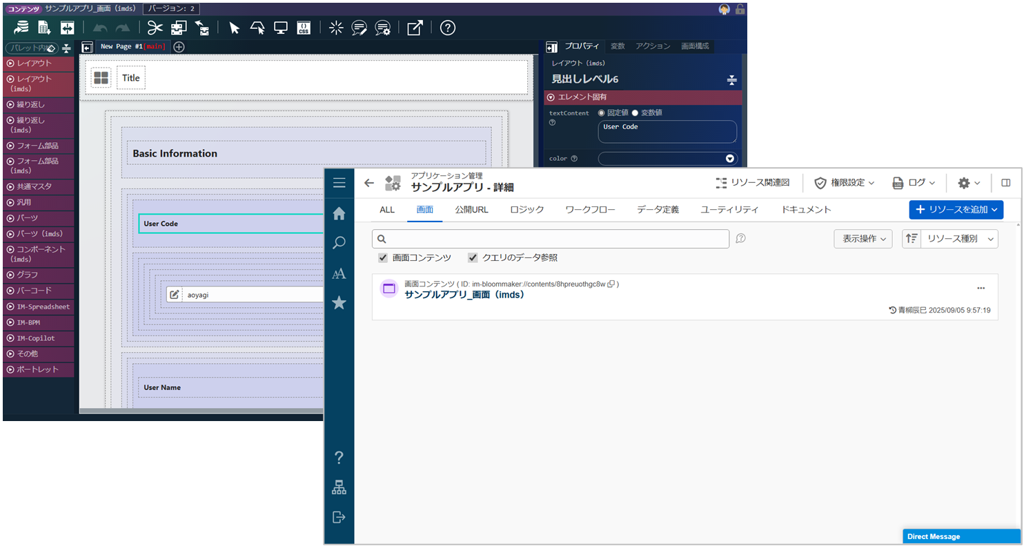 アプリケーションの画面コンテンツは、Accel Studioと連携しているIM-BloomMakerの機能を使用して設定します。IM-BloomMakerは、アプリケーション画面をWebブラウザ上で簡単に作成するためのツールです。