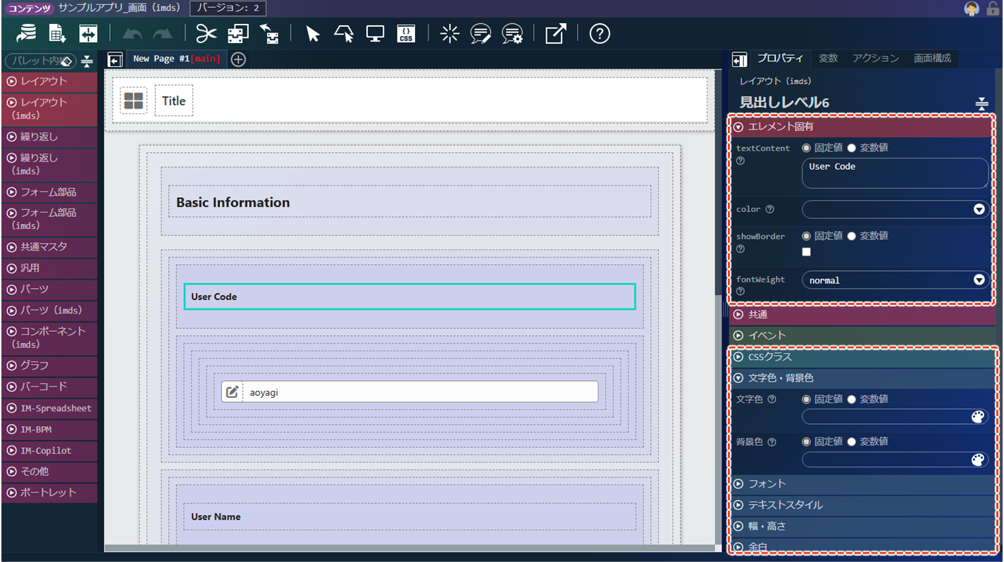 - エレメントの見た目の調整について、詳細は「intra-mart Developer Portal - デザイナ画面で見た目を調整したい」を参照してください。