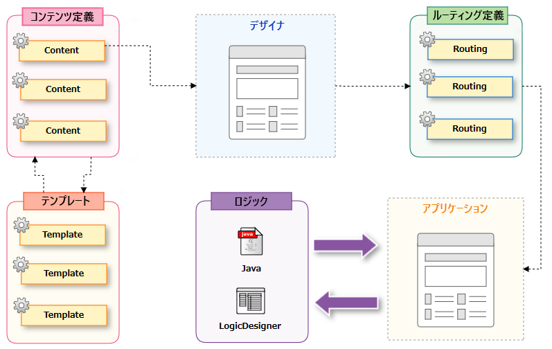ここでは、アプリケーションにコンテンツ定義を追加する際の操作手順と、あわせて表示されるデザイナ画面について説明します。