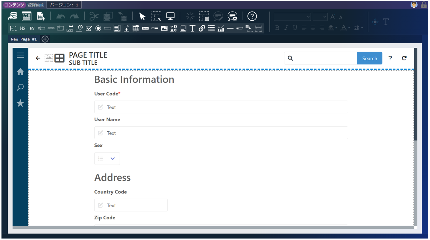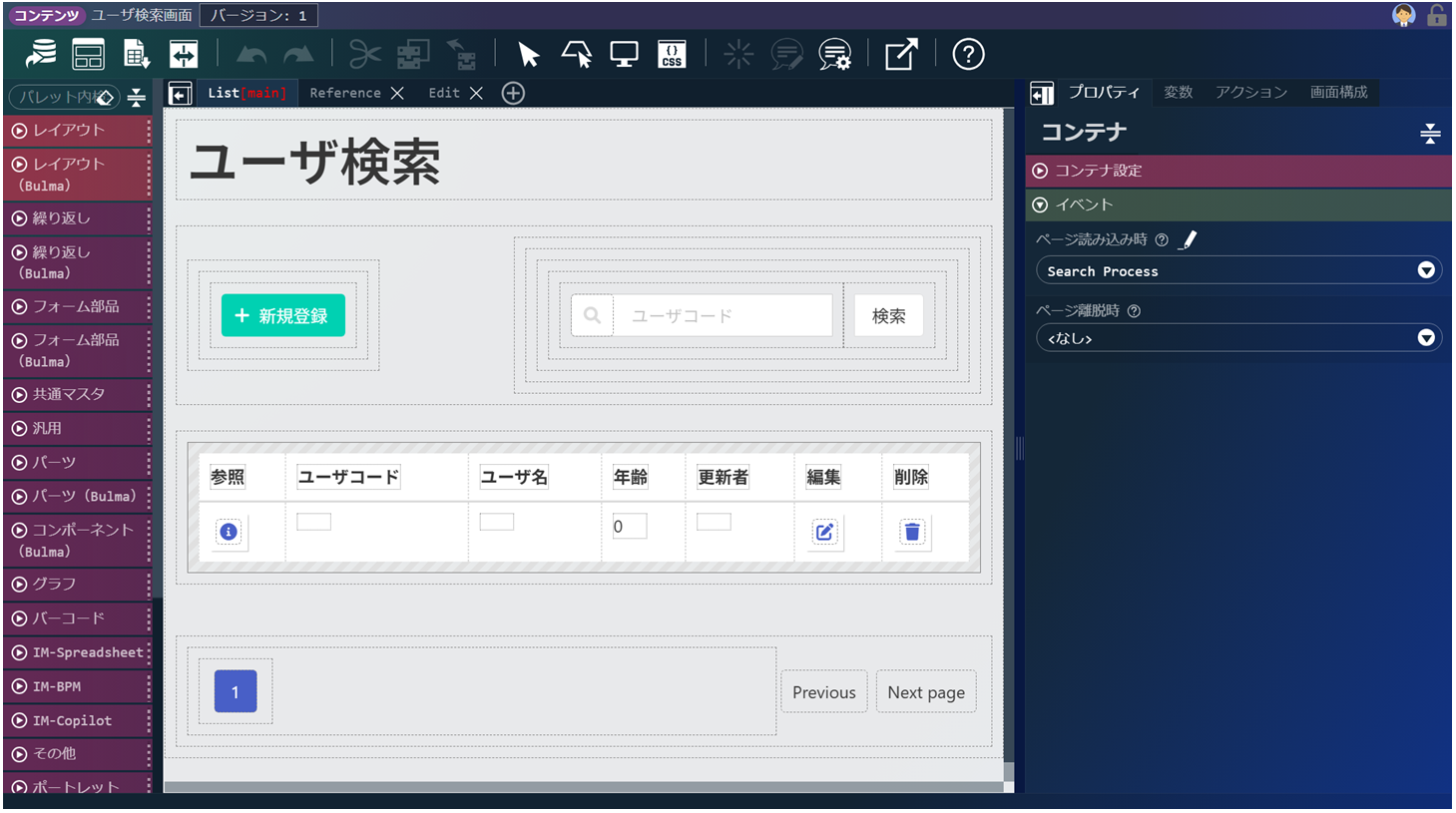 デベロップモードは、主に技術者向けのモードで、多種多様な画面を柔軟に作成できます。エレメントごとに詳細なプロパティを設定したり、レイアウトを細かく調整したりなど、自由度が高いデザインが可能です。また、変数やアクションを設定することで、複雑な動作や高度なカスタマイズにも対応できます。