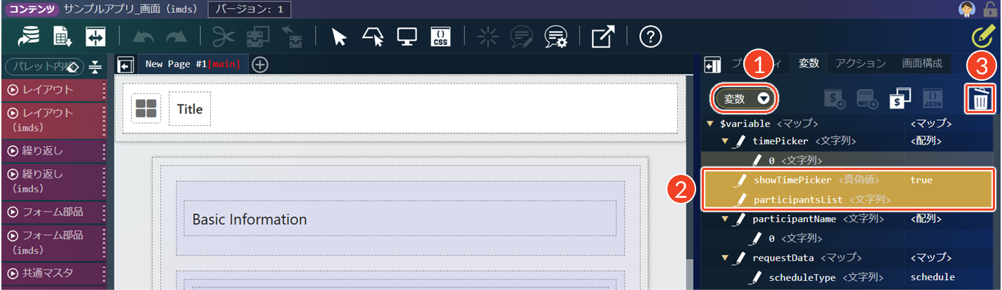作成した画面変数(変数・定数・入力変数)を削除します。