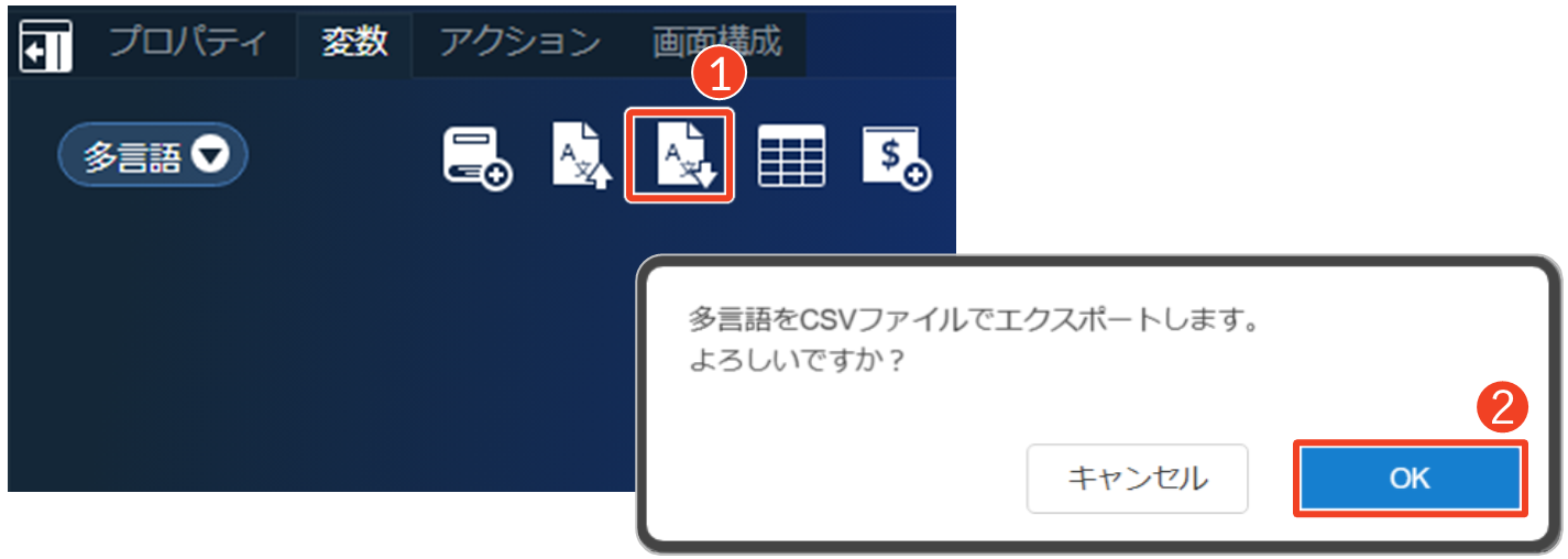- 設定に進む前に、多言語変数の概要を確認したい場合は、「画面変数と環境情報の設定 > 多言語変数とは」を参照してください。